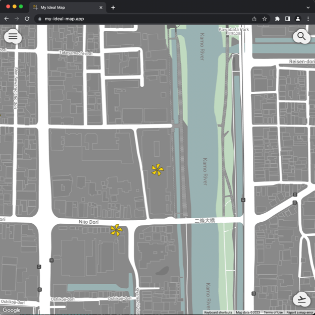 このWebアプリは、その願望を現実にしたものです。その他のGoogleマップの機能は必要最低限のものだけ再現し、余計な機能に煩わされないユーザー体験を実現しました。